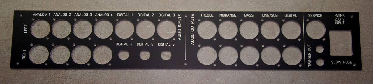Rückwand für einen Vorverstärker inc. Gravur.3mm eloxiertes Aluminium