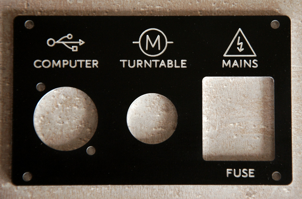 Frontblende für Plattenspielernetzteil aus 6mm Alu, poliert